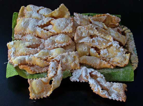 Never in any epoch has there been a festivity worthy of its name without food, we all agree? What then do you eat in Rome to celebrate Carnival? It is enough to go to a pastry shop or to a well-stocked bar to feast your eyes. You will find the frappe (also called chiacchiere “chitchats”, bugie “lies” or frappole in other regions of Italy): stripe shaped sweets often knotted to form sort of a bow made with a dough of flour, eggs and sugar, which is then fried or baked and finally enriched with a sprinkle of powdered sugar, honey or a splash of liquor.