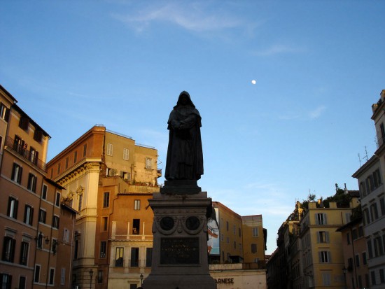 There is a less known square than the previous one, which does not host Christian places of worship but a monument dedicated to a philosopher. It is Campo de’ Fiori and the philosopher in question is the Dominican friar Giordano Bruno, who lived in the seventeenth century.