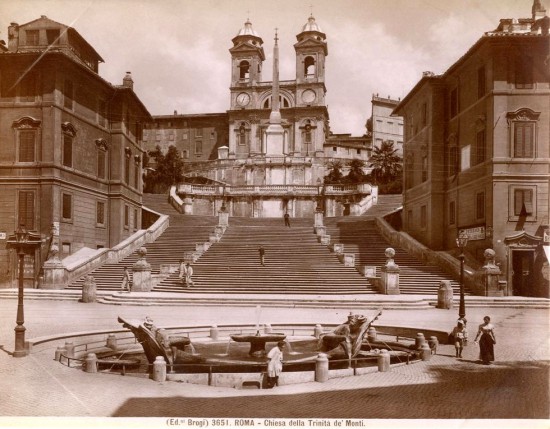 La Barcaccia. This characteristic fountain set in Piazza di Spagna, just in front of the Spanish Steps, was designed by Pietro Bernini, father of the famous Gian Lorenzo. The client was the patron Pope Urbano VIII, as testified by the two coat of arms positioned outside, depicting a tiara and bees, which are part of the iconography of the papal family heraldry. The inspiration for the creation of this fountain, completed in 1629, may have been a particular episode that affected Rome in 1598, when due to a flood of the river Tiber, a boat appeared aground in the centre of the square. From here, according to legend, comes the name “barcaccia”, which means ‘a poor boat’.