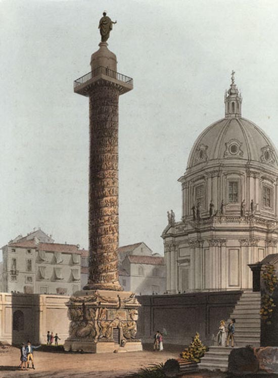 Trajan's Column Etching, colorized, Engraved by M. Dubourg. Published London 1820